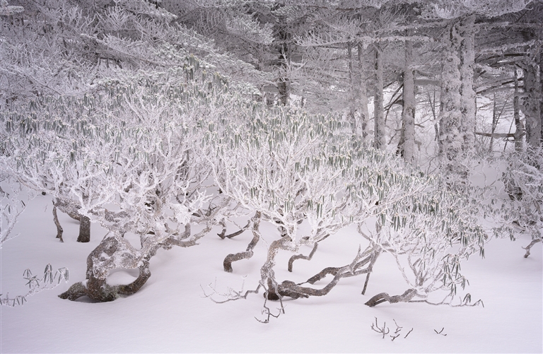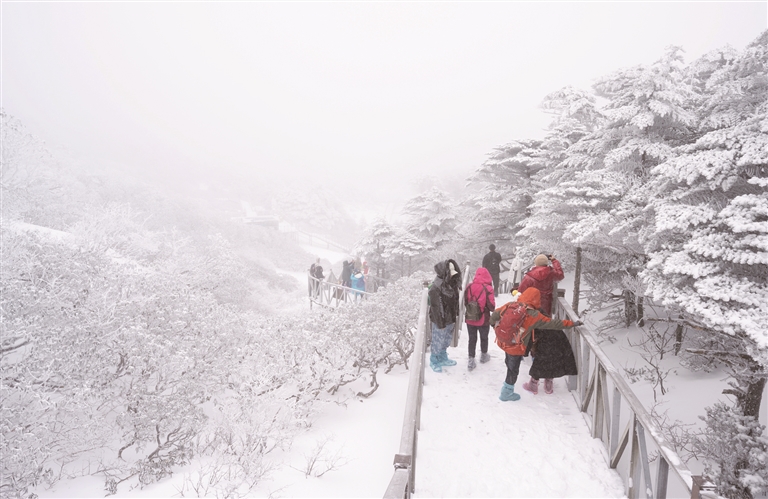 雪后蒼山,多了一份銀色的美麗。那山間谷里,草上葉上,瓊枝玉葉,銀裝玉砌,皓然一色,在三三兩兩游客的羽絨服映襯下,真是一派瑞雪豐年的動人景象。