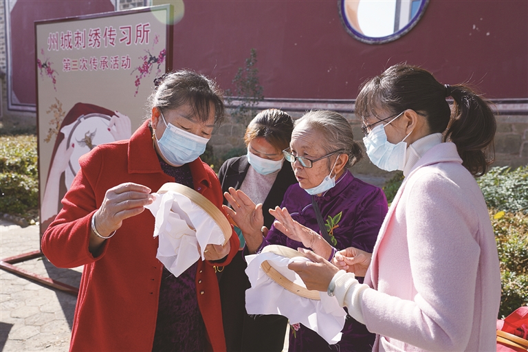 近年來,賓川縣加大對非物質(zhì)文化遺產(chǎn)的傳承保護工作,州城鎮(zhèn)黨委政府在文廟和武廟成立了州城鎮(zhèn)刺繡傳習(xí)所,并邀請彭開會擔(dān)任教師教授村民刺繡工藝。截至目前,州城鎮(zhèn)刺繡傳習(xí)所共開展3次大型教學(xué)活動,傳授學(xué)員100余人次,越來越多的村民感受到刺繡的魅力,加入到傳承刺繡的隊伍。彭開會滿懷信心地憧憬著未來,她希望一直繡下去,把手藝傳給更多的年輕人。