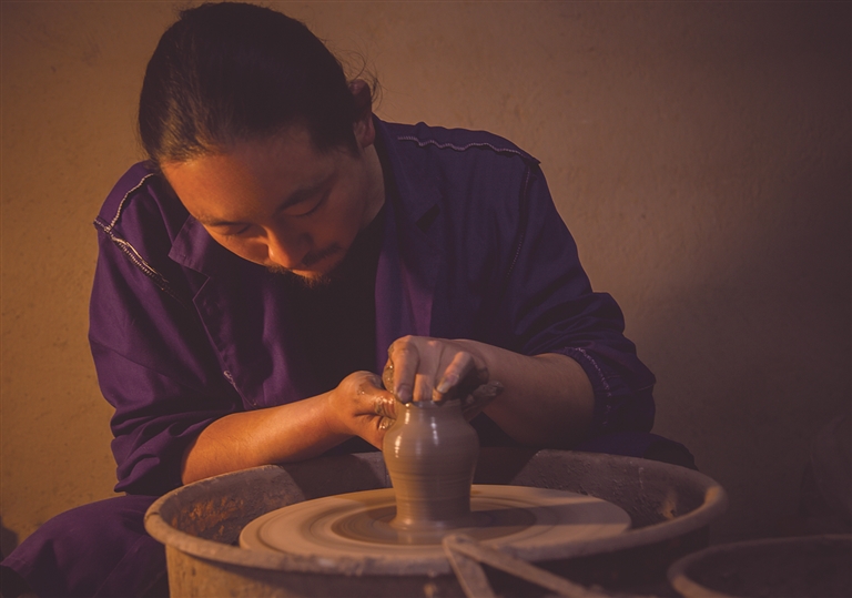 29歲的寇福旺是省級非遺保護項目“大營土陶制作技藝”縣級代表性傳承人,他出生在祥云縣禾甸鎮大營莊。從小看村里的土陶師傅用柴火燒制土陶,大營特有的土陶文化,讓寇福旺對土陶有著特有的感情。