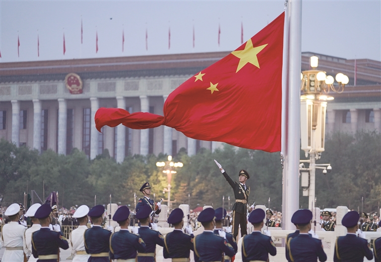 五星紅旗冉冉升起,眾人齊唱國歌,歌聲響徹天空。人們說,這是屬于中國人的浪漫。