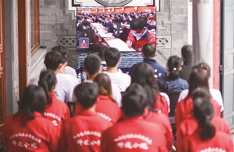 北京協(xié)和醫(yī)院四大院區(qū)組織1000余名醫(yī)護(hù)人員,16日上午集體收聽收看了黨的二十大開幕會(huì)直播。