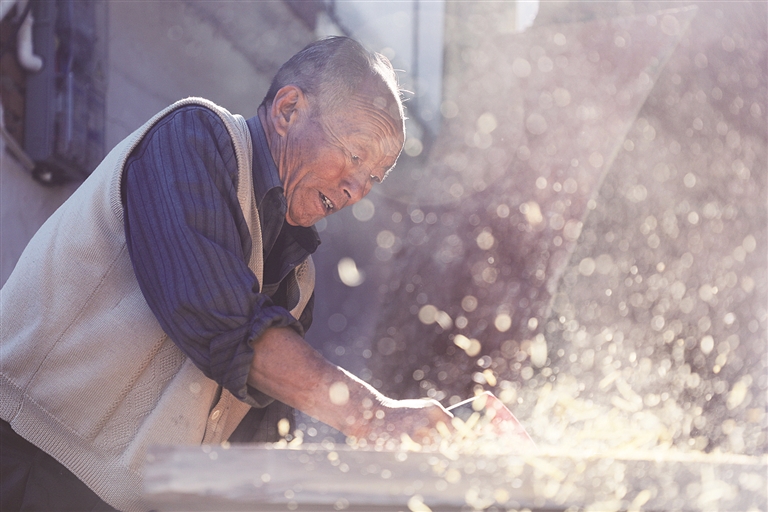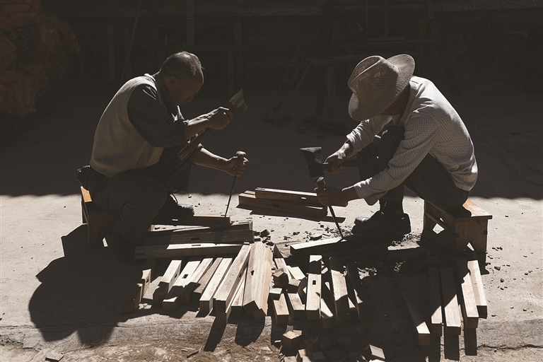 也因為做木匠的緣故,歐陽定權在漾濞河西結識了妻子,從此就在漾濞安了家。之后的木匠生計中,他還繼續學習、鉆研木匠手藝,漸漸地,歐陽定權的木匠手藝也在漾濞縣城傳開了,盡管受鋁合金門窗興起的影響,但他做木活的生意從來沒斷過,還是有一群喜歡木制品的人慕名找上門定制傳統木具。