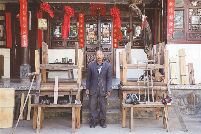 “在20世紀80、90年代,我在蘭平、鶴慶等周邊地區到處跑,吃百家飯、住百家屋,那個時候,手藝人去到哪里都是受人尊敬的,現在講起來還是挺懷念的!”回憶起早年在外做木匠的生涯,歐陽定權仍念念不忘。