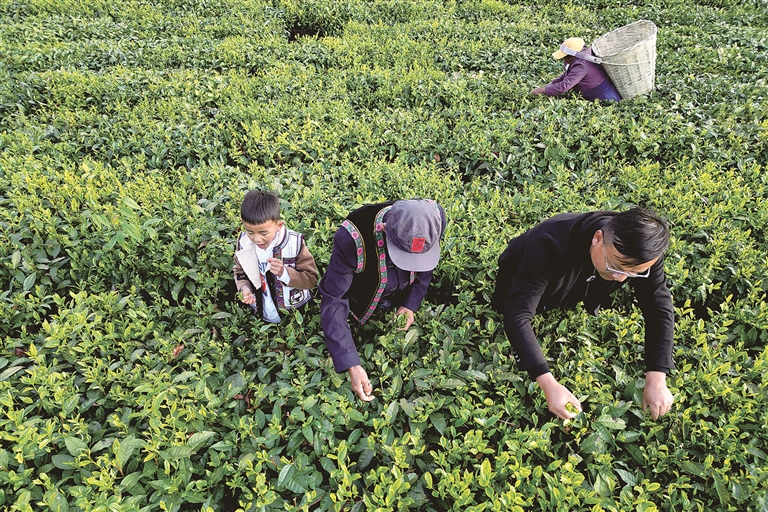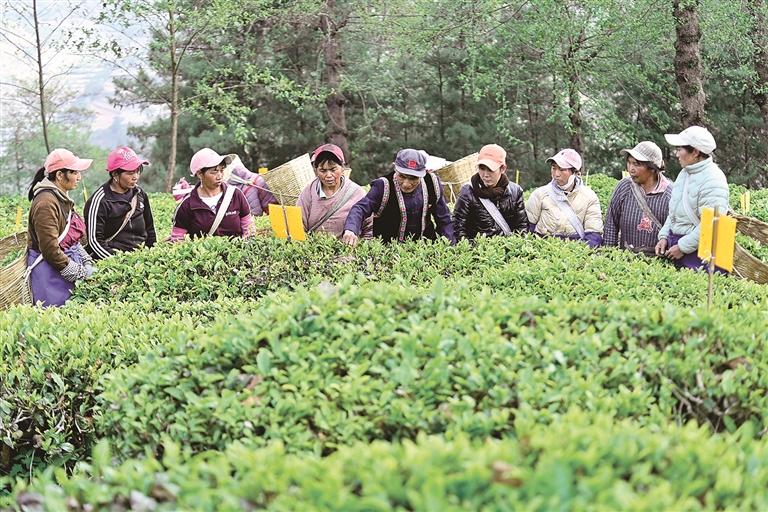 南方有嘉木,云嶺出好茶。4月4日,在南澗縣羅伯克茶場的一片片有機茶園里,一壟壟翠綠的茶樹蜿蜒起伏,三三兩兩的茶農在茶園里采摘“明前茶”,臉龐洋溢著恬淡的笑容。春日暖陽下,人與自然和諧共生的“春日茶歌”在茶園間奏響。