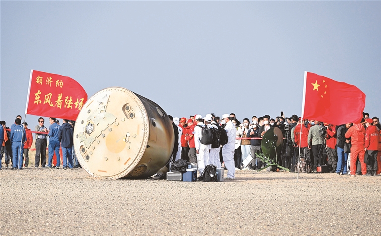 減速、反推發(fā)動機點火……一系列動作一氣呵成,返回艙成功著陸。
