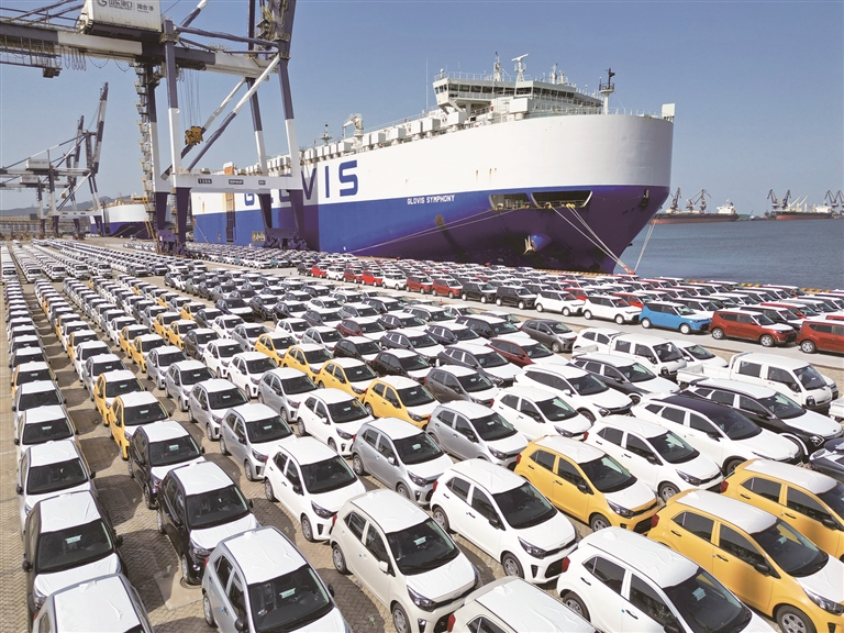 頂住壓力,我國外貿展現了較強韌性。二季度以來,我國月度進出口規模穩定在3.4萬億元以上。前8個月,我國進出口總值27.08萬億元,同比微降0.1%。8月當月,進出口3.59萬億元,同比下降2.5%,環比增長3.9%。電動載人汽車、鋰電池、太陽能電池上半年合計出口增長超6成,成為拉動外貿增長的“新三樣”。