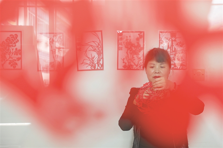 “小時候剪紙,就是剪一些窗花,剪一些喜字,貼在門窗和嫁妝上,感覺特別喜慶。”歐春榮說,從最初學剪紙到現在,剪紙這項手藝已經深深地融進了她的生活,只要一有空閑時間,她就會拿起剪刀,非常愜意地操練起來。