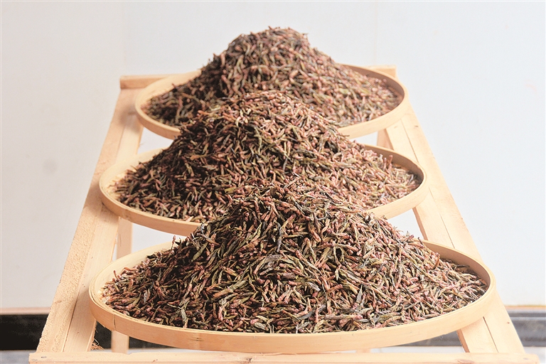 8月13日,在海拔2632米的黑苴村委會上黑苴小組,茶農們在采摘、制作著他們試點種植的天峰雀嘴茶。李梅介紹,天峰雀嘴茶全都是采摘茶枝頂芽,通過“三蒸三露”傳統手工技藝制作而成:清晨將采摘的頂芽放在木甄子里蒸,然后攤開放在簸箕里晾曬,夜晚再接受露水浸潤,重復以上工藝三天,逐漸縮短蒸、露時間,水分低于7%時即可收取保存。“蒸”較好地保留了葉綠素、氨基酸和礦物質元素,保持雀嘴形狀;“露”更好地保留芳香物質、凝聚香氣,保持雀嘴茶獨特正宗的口感。