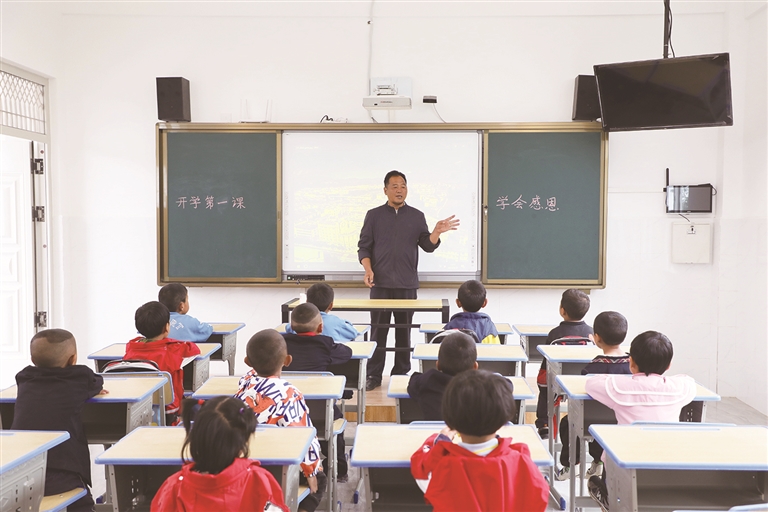 8月27日,隨著新學(xué)年開學(xué),漾濞縣漾江鎮(zhèn)抱荷嶺村雀山小學(xué)的18名師生搬進(jìn)了嶄新的教學(xué)樓。一大早,教師陸學(xué)華就帶著穿著民族盛裝的部分學(xué)生家長,一起忙著搬桌椅布置新教室。