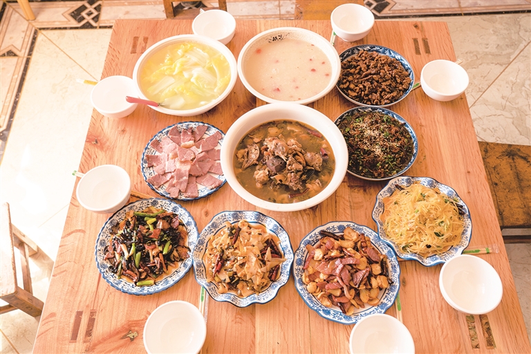 “古梅農(nóng)莊”“百合宴”飄香,重樓、彝家火腿、山雞、野生菌、古梅釀等特色美食琳瑯滿目。夜晚入住民宿“明梅人家”,星光下手捧香茶……