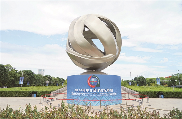 初秋的北京,長安街迎賓花壇布置一新,天安門廣場披上盛裝,道路兩側(cè)掛起“中非共命運 合作啟新程”的道旗,“合抱之手”的論壇會徽裝點大街小巷……