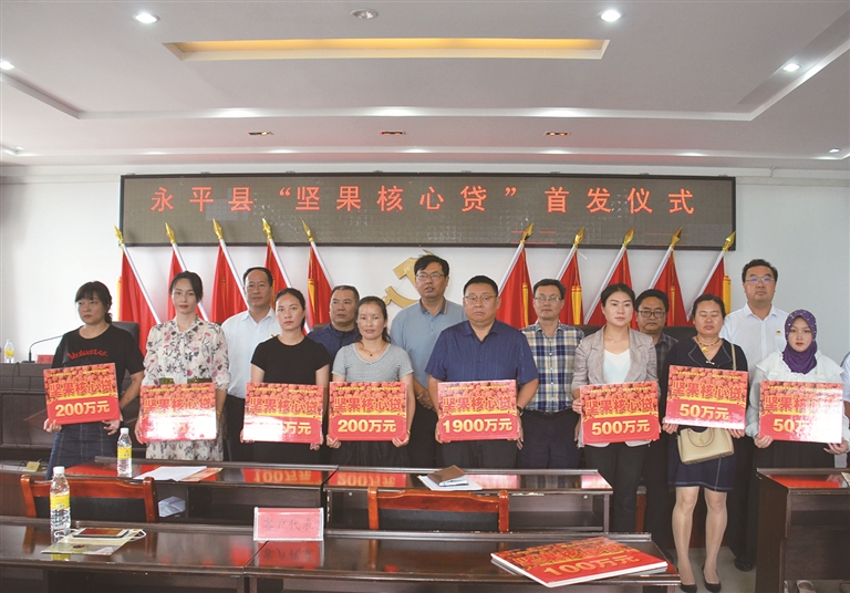 當天,永平縣舉行“堅果核心貸”首發儀式,永平農村商業銀行向永平縣果亮農副產品有限責任公司、云南永平紅喻核桃產業有限公司等10家企業和個人授信3200萬元。