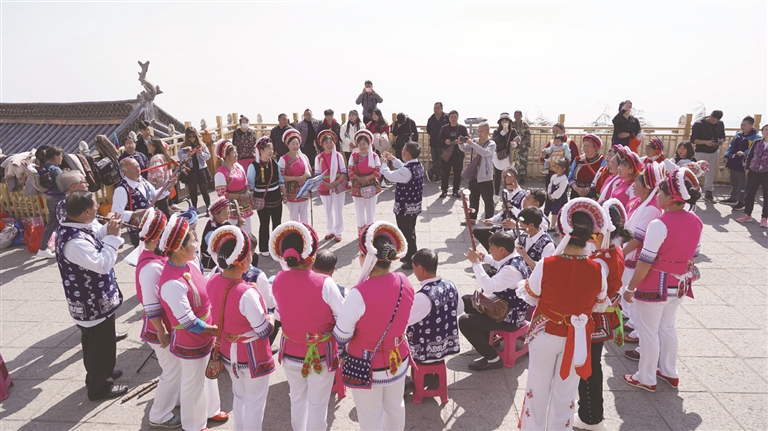 2月19日,農歷癸卯年正月的最后一天,賓川縣雞足山景區邀請雞足山鎮沙址地區的“朝山調”傳承人,開展“非遺進景區 朝山調唱起來”活動,讓傳承了幾百年的“朝山調”唱響雞足山,為景區增添一道燦爛而溫馨的人文風景。