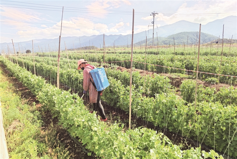 5月17日,劍川縣馬登鎮黃花村村民正在為荷蘭豆追肥。