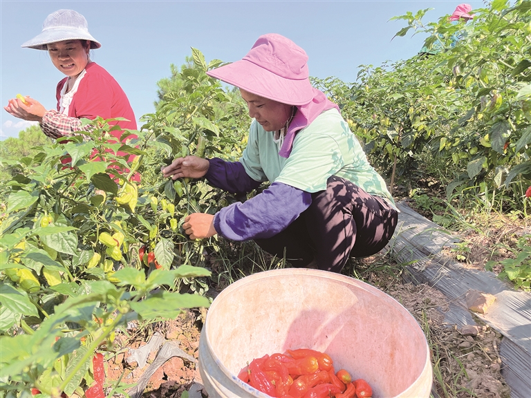 永平縣廠街鄉爐塘村群眾在采摘工業辣椒。(攝于9月13日)