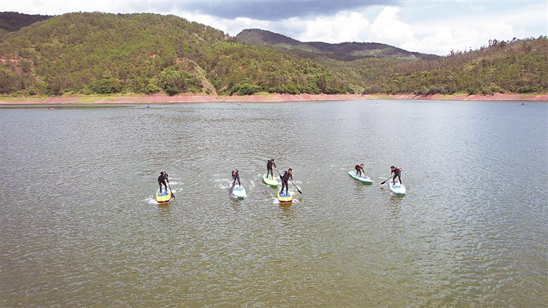 夏日炎炎,三合村栗樹營(yíng)水庫卻是一幅活力滿滿、動(dòng)力十足的景象。大理州體育中學(xué)皮劃艇隊(duì)的運(yùn)動(dòng)員在教練的統(tǒng)一指揮下,帶著各自的皮劃艇和槳板,投身碧水之中,開展一輪輪嚴(yán)格的水上訓(xùn)練。
