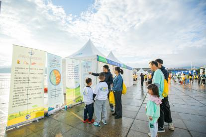 戶外安全宣導員為參加賽事活動的群眾講解戶外安全知識